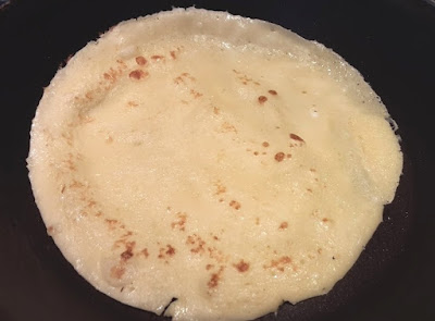 Quando comincia rassodarsi e a fare le bolle rigirarla con una spatolina o se si è in grado farla saltare onde cuocerla dall’altro lato..