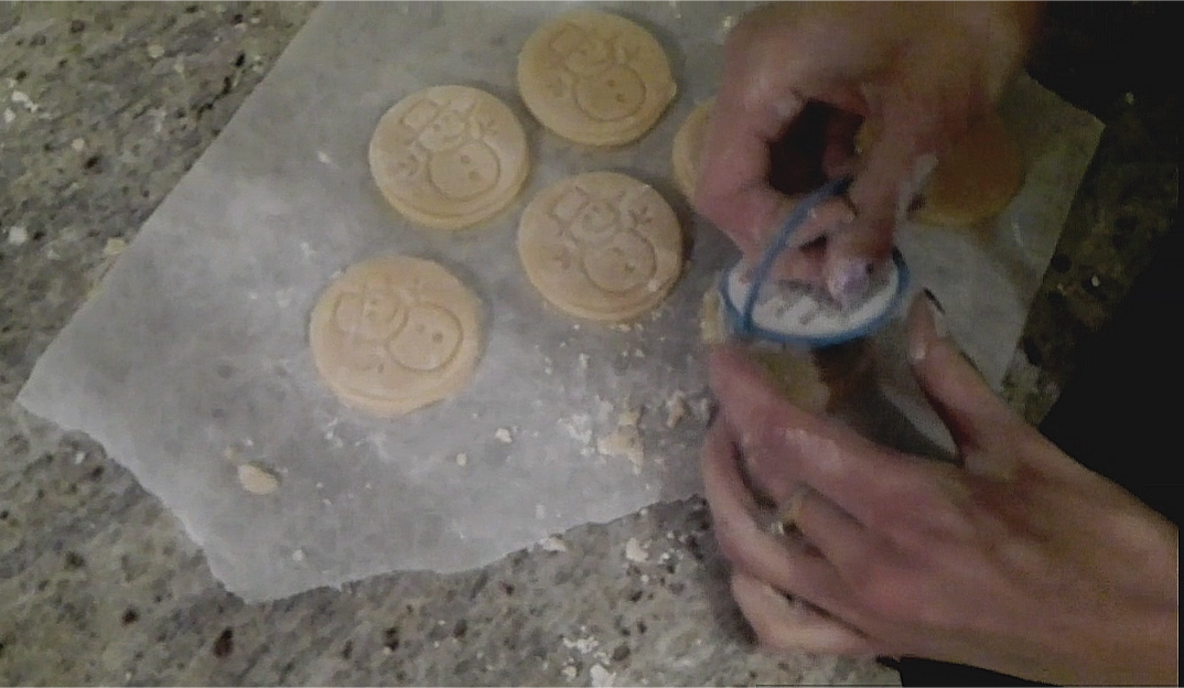 Decorate con i cookie stamps a forma di pupazzo di neve.