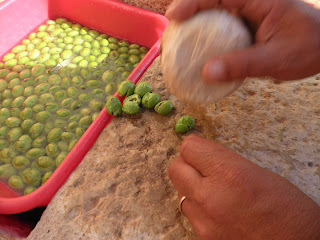 Le olive possono essere verdi oppure nere (varietà moresca del territorio ibleo); a quelle nere dedicherò un post nei prossimi giorni.