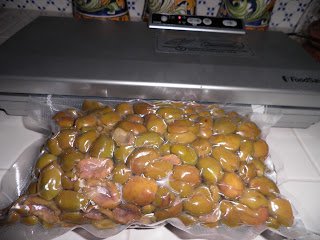 A questo punto sarebbero pronte per essere condite e sistemate in vasetti sott’olio; io preferisco un altro metodo: siccome sono tante non le condirò tutte, ma le conserverò in sacchetti sottovuoto nel freeezer. Ogni volta che mi servirà un antipasto sfizioso, le condirò con le erbette fresche in modo che il sapore di oliva nuova sia esaltato.