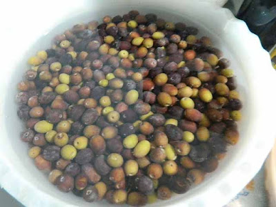 Deamarizzare le olive mettendo in un recipiente capiente le olive e ricoprirle completamente di acqua.