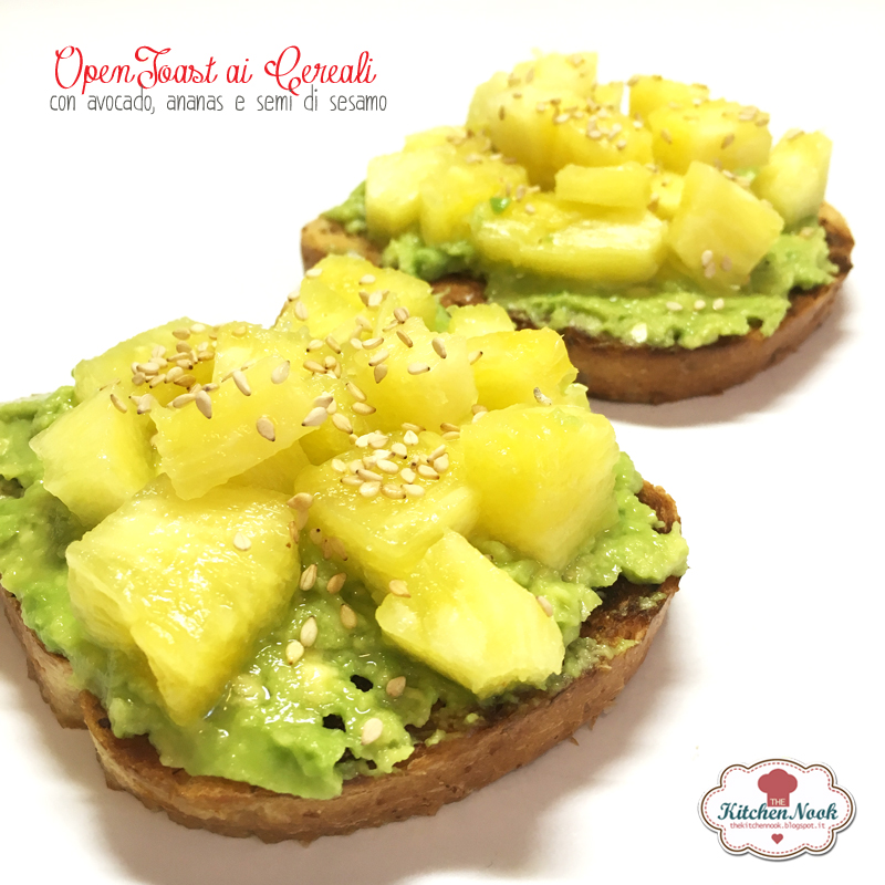 Seguo diversi profili su instagram, molti dei quali inerenti al fitness e la nutrizione sana. Da tempo volevo provare questo open toast con avocado. Io ho deciso di aggiungere alle numerevoli proprietà benefiche dell’avocado (è ricco di acido grasso linoleico e omega 3. Si tratta dei cosiddetti “grassi buoni”, che riescono ad inibire la produzione di colesterolo. E’ ricco anche di antiossidanti che combattono i radicali liberi e a rallentare l’invecchiamento cellulare) anche le proprietà dell’ananas (gli acidi organici presenti all’interno di questo frutto conferiscono proprietà diuretiche, depurative, disintossicanti, cosmetiche e dimagranti, in grado di combattere la ritenzione idrica) e dei semi di sesamo (giusto per avere una manciata di omega 3 in più che non fanno mai male!). Io ho usato due fette di pane ai cereali, lo adoro, ma potete usare ovviamente quello che preferite. Una ricetta vegana super facile ma golosissima.