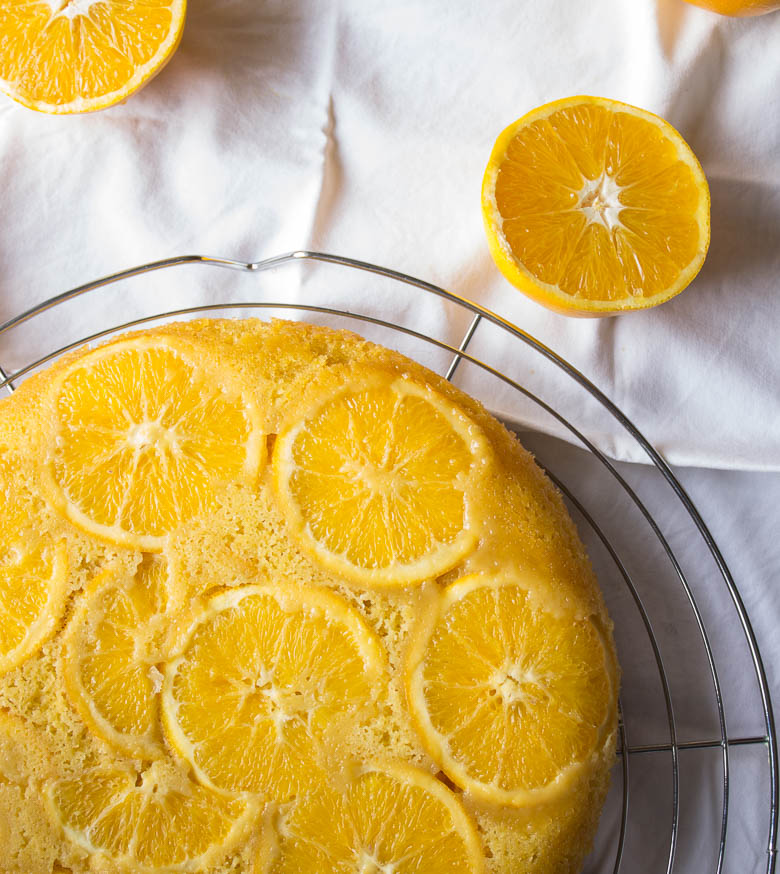 Morale della favola, non sempre la vita va secondo i piani. Secondo i programmi che ti eri segnata nella mente. No, molto spesso non teniamo conto del fattore x, quello ignoto, che ogni tanto ci scombussola un po’. Ma poi sta a noi se piangerci addosso o prendere in mano i redini di ciò che rimane. Ed io quindici giorni fa, decisi di prendere quelle arance. Di portarle con me, di farmele amiche in qualche modo la mattina, e solo poi di trasformare una sanguinosa torta rovesciata, in una semplice torta rovesciata all’arancia.
