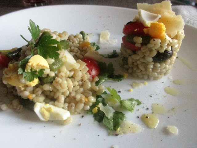 Cook barley in a pressure cooker along with the beans, then drain it and quickly pass it under cold water to stop the cooking.