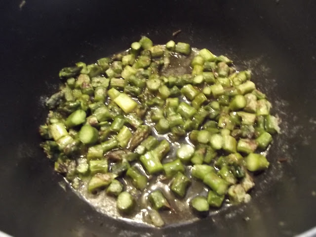 Lavate, spuntate e tagliate a tocchetti gli asparagi, quindi soffriggeteli in un po’ di olio evo con la cipolla,aggiungete un pizzico di sale, fateli poi andare a fuoco lento per una ventina di minuti, quindi aggiungeteci le orecchiette, fatele tostare a fuoco alto come se aveste del riso (diventeranno cosi’ risottate), poi aggiungete del brodo vegetale caldo di tanto in tanto per non farle attaccare, abbassate il fuoco e giratele. A cottura ultimata mantecatele con una mozzarella tagliata a dadini e cospargete di parmigiano grattuggiato.