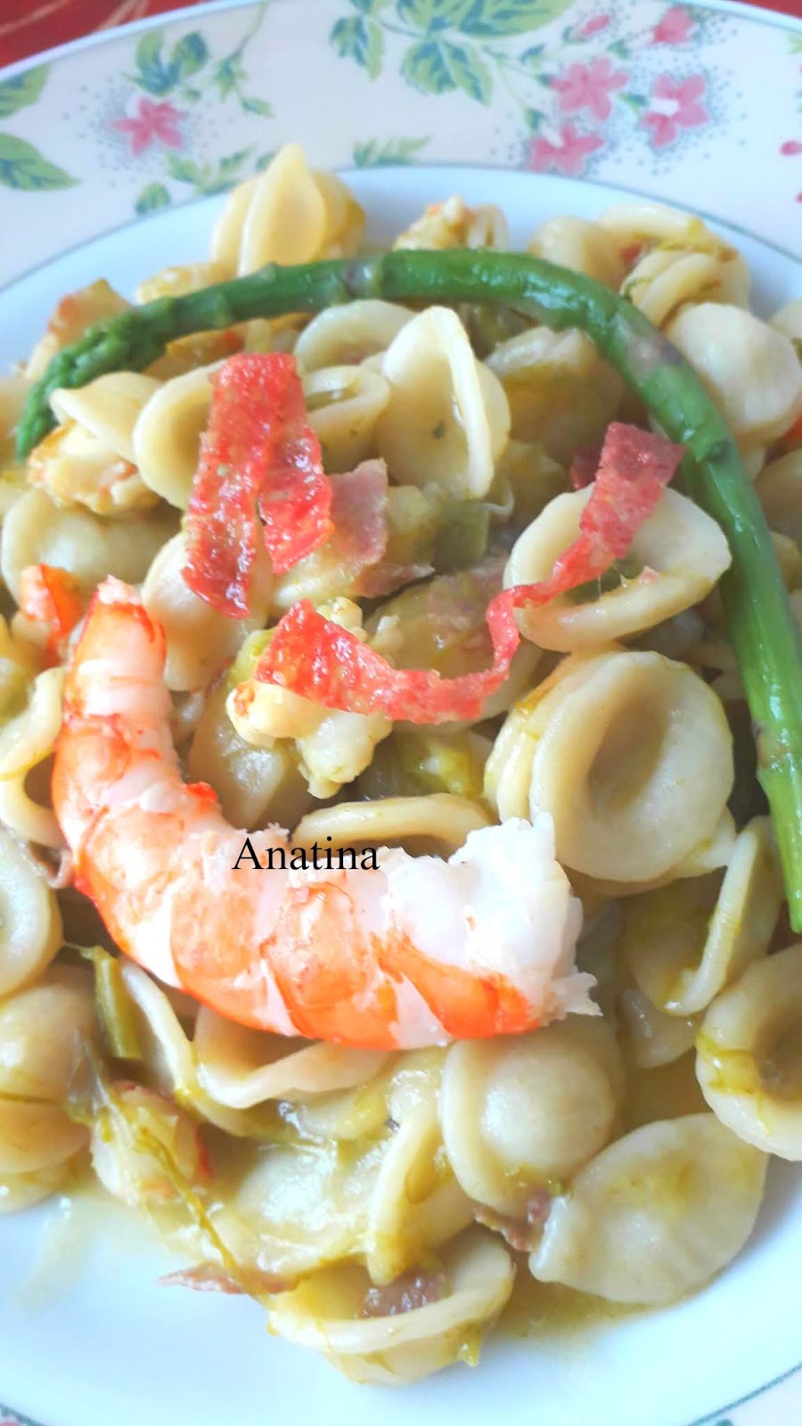 Serviremo con 1 asparago e gambero interi (tenuti al caldo) e pancetta croccante!!