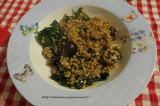 200 gr orzo integrale, 1 mazzetto di bietole, 400 gr funghi pioppini, 1 spicchio d’aglio, peperoncino tritato, sale integrale, olio extravergine d’oliva.