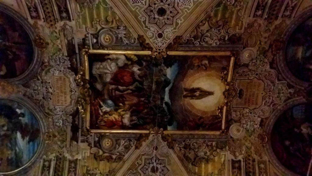 Torniamo in zona più centrale dove notiamo la chiesetta della Santissima Trinità risalente al 1272, dalla graziosa facciata rosa e bianca in stile neoclassico. Ingannati dalle modeste dimensioni, ci affacciamo senza troppa convinzione, ma anche qui, restiamo incantati dal tripudio di dipinti e fregi, delicati come pizzi, che impreziosiscono il soffitto, scendendo fin giù per le pareti.