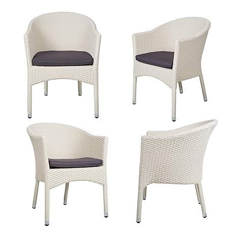 Dporticus Patio Armchair Rattan Chair Set Outdoor Modern All Weather Wicker Round Dining Chairs With Cushions Set Of 4 White