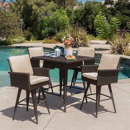 Outdoor Bar Height Dining Set Table 4 Swivel Arm Chairs