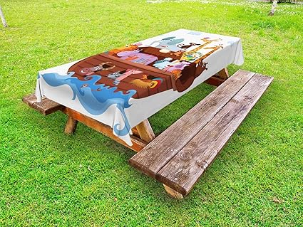 Amazon Com Lunarable Cartoon Outdoor Tablecloth Happy