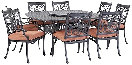 Darlee St Cruz Cast Aluminum 10 Piece Dining Set With Seat Cushions 64 Inch Square Dining Table And 30 Inch Lazy Susan Antique Bronze Finish