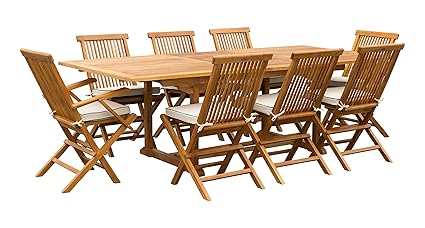 Amazon Com 9 Piece Teak Wood Miami Patio Dining Set With