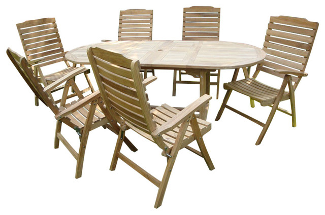 66 Buckingham Oval Double Extension Table With 6 Reclining Chairs Grade A Teak