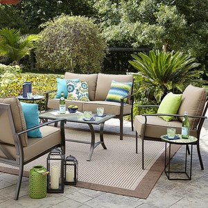Details About Brand New Garden Oasis Harrison 4 Piece Glass Top Outdoor Seating Set