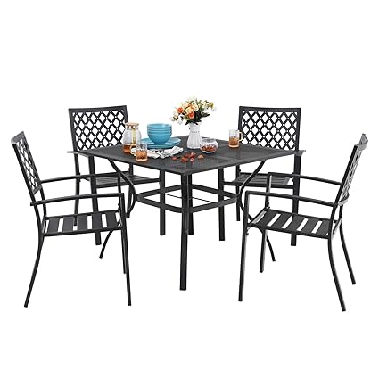 Mf 5 Piece Outdoor Patio Metal Dining Sets 37 Square Mesh Patio Bistro Table With Umbrella Hole And Armrest Dining Chairs Black