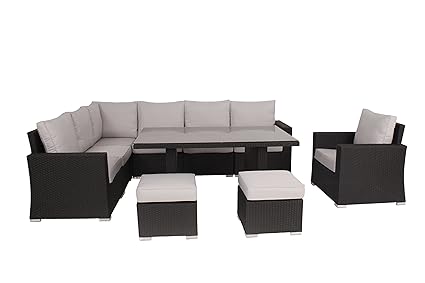 Topcobe Outdoor Furniture Sectional Sofa Set All Weather Pe Rattan Wicker Garden Sofa Sectional Furniture Sets 7 Piece Cushioned Patio Dining Table