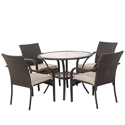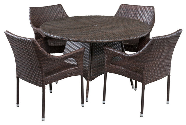 Gdf Studio 5 Piece Lorelei Outdoor Multibrown Wicker Dining Set