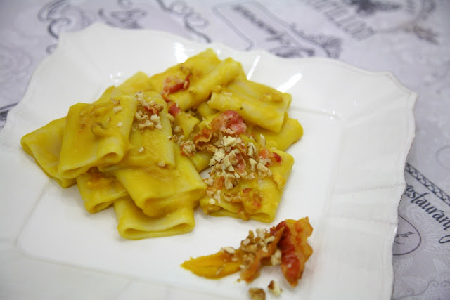 In questa pasta ho proprio realizzato una crema per avvolgere e aggiunto una nota croccante per dare un po’ di sprint al piatto. Ha aggiunto il bacon per dare un po’ di sapidità al piatto, non volevo che restasse troppo dolce.