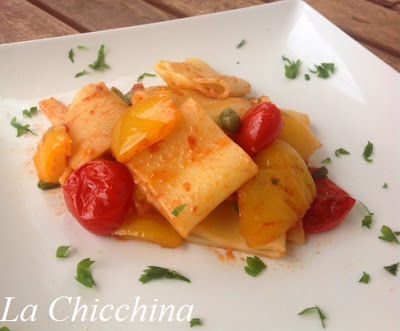 Avendo nella dispensa una confezione di questa pasta pregiata, mi sono spremuta le meningi per preparare un condimento ESAGERATAMENTE buono….e allora, quei due peperoni che mi facevano l’occhiolino mi sono sembrati proprio gli ingredienti ideali…..Detto fatto, ecco pronto un piatto di pasta degno di nota.
