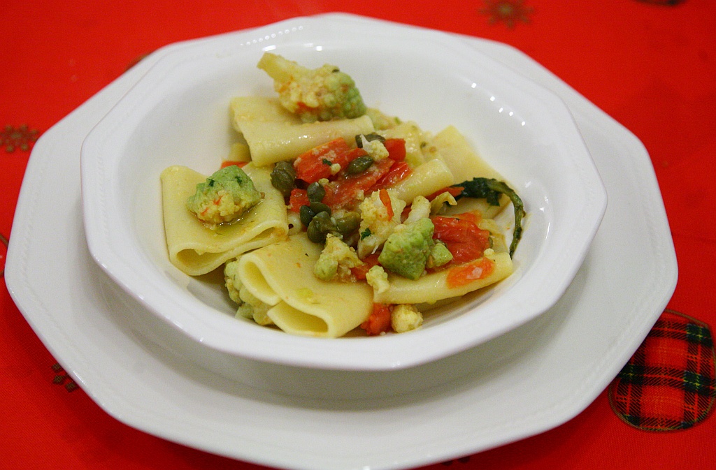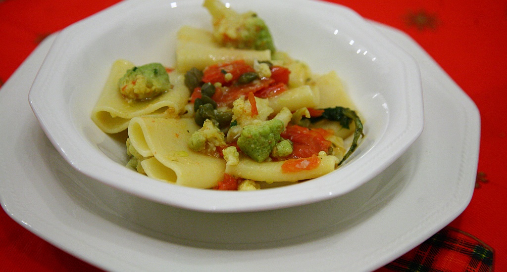 Sono sempre attirata dai cavolfiori colorati e dai broccoli tutte le volte che vado al mercato o al supermercato, se poi amici di famiglia si presentano alla tua porta con una cassetta di verdure dell’orto tra le quali spiccano un cavolfiore giallo, uno viola e uno di un bel verde… non puoi fare altro che rendere onore con una bella pasta.