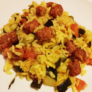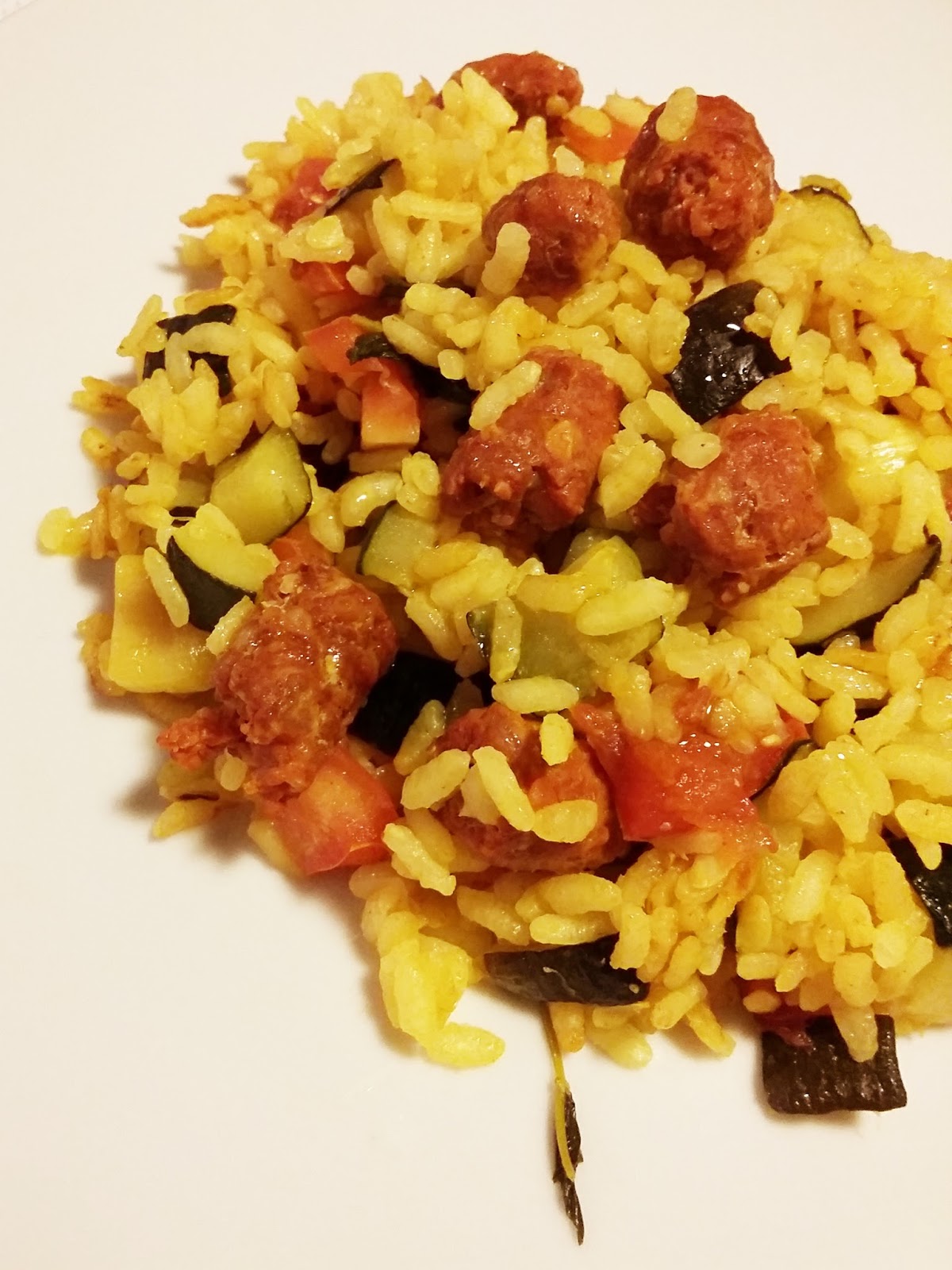 Per riprendere dopo la pausa estiva, ho pensato di proporvi questa che è stata la ricetta “rivelazione” della mia estate: ho scoperto le salsicce di manzo e soprattutto il loro abbinamento perfetto con verdure, spezie e riso! E’ un piatto che più semplice non si può, ottimo anche da preparare in anticipo e scaldare all’ultimo. Se vi piacciono i gusti di ispirazione araba, fidatevi di me e provate.