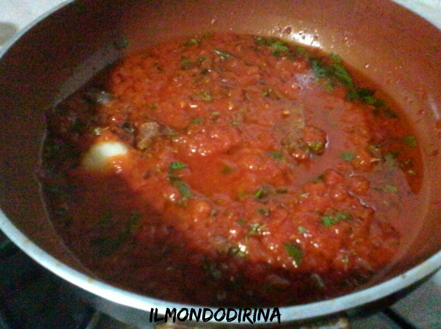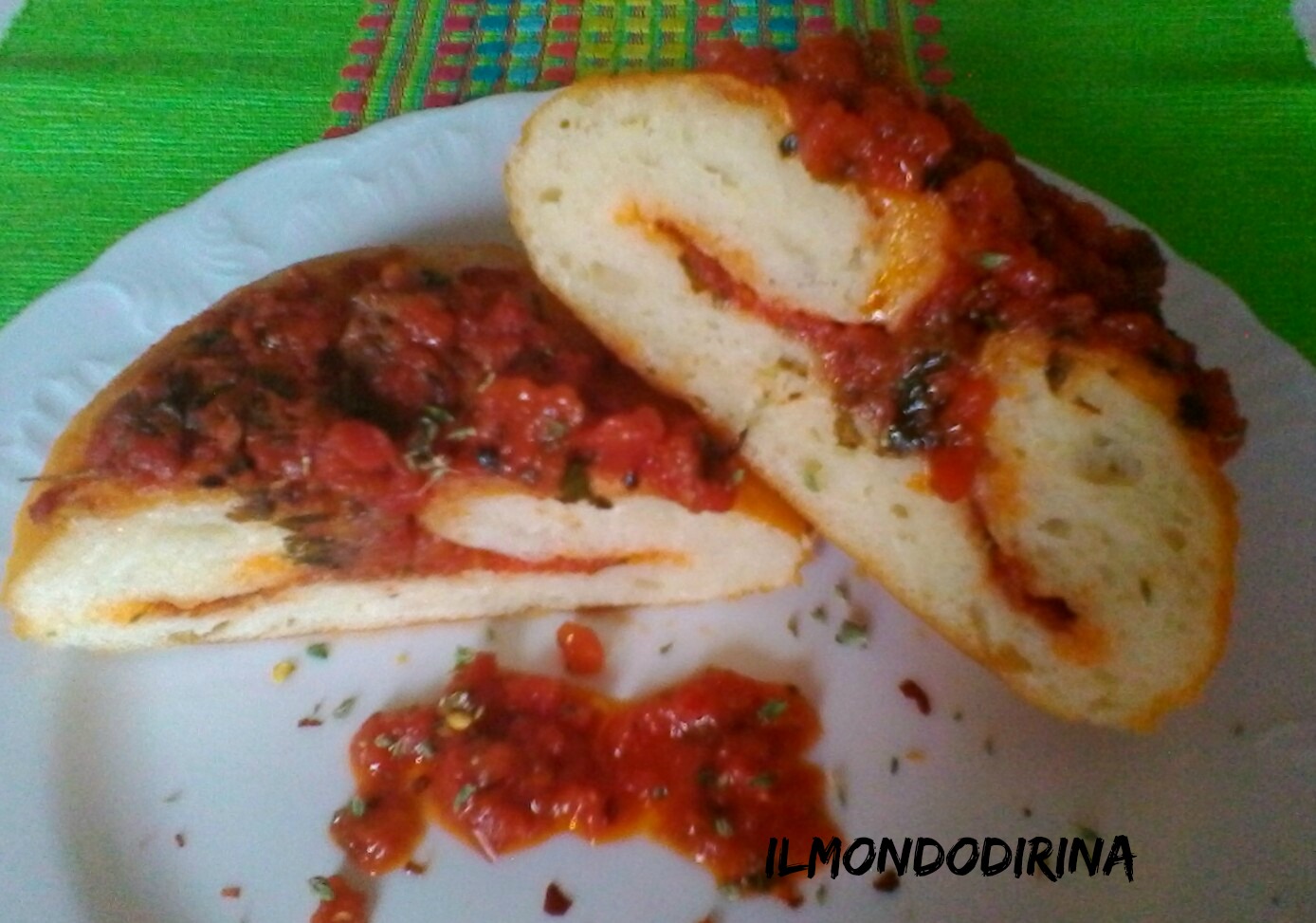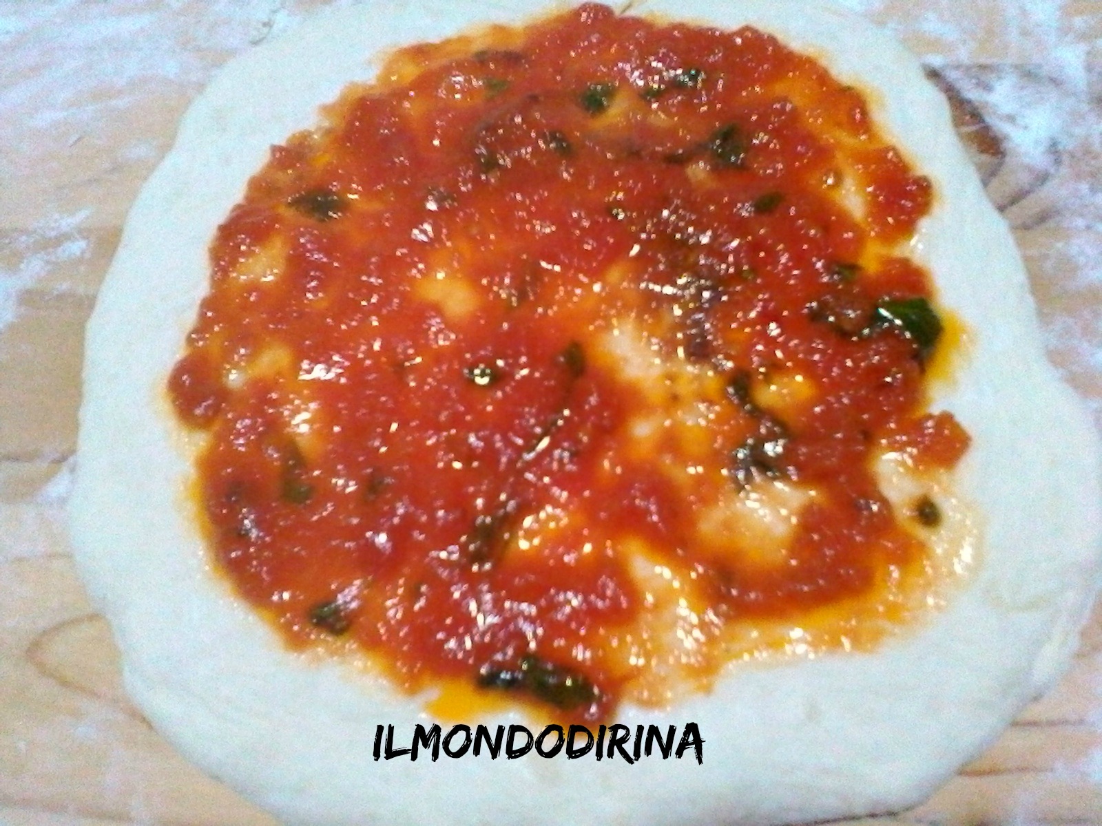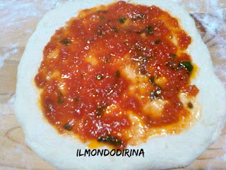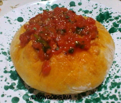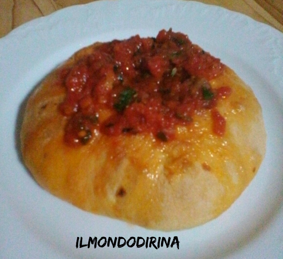 Rispetto alla ricetta originale ho usato meno lievito prediligendo una lievitazione più lunga; al sughetto ha aggiunto lo spicchio d’aglio e il peperoncino, lo insaporiscono maggiormente.