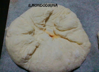 Mi piace tanto il blog di Roberto Fusco ” a cucina e mammà ” e lo visito spesso, le sue ricette hanno la facoltà di farti venire l’acquolina solo a guardare le foto. E così l’altro giorno ho scoperto questa pagnotta così invitante che tra il vederla e il farla il tempo intercorso è stato brevissimo . Questa specie di pizza, racconta Roberto, era usanza prepararla in occasione della festa di Santa Chiara, usanza ormai persa in quanto ormai è impossibile trovarla anche nelle friggitorie del centro storico.