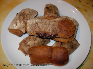 Sciogliere il lievito nell’acqua con un pizzico di zucchero, aggiungere gli altri ingredienti ed impastare bene. Lasciar lievitare qualche ora. Stendere delicatamente col matterello e ritagliare in quadrati. Al centro dei quadrati distribuirvi il cioccolato tagliato a bastoncino e ripiegare i quadrati in tre, avvolgendo il cioccolato, quindi: cioccolato al centro, piegare prima un lato e poi l’altro. Adagiarle sulla teglia con cartaforno e lasciar ancora una mezz’oretta per far riprendere la lievitazione. Cuocere a 190° per 20 minuti.