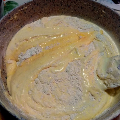 - Se il composto dovesse risultare troppo denso allentare con un goccio di latte fino a raggiungere la consistenza delle foto. Versare nello stampo.