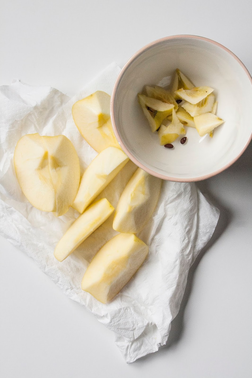 Lavate le mele, eliminate il torsolo dalle 2 mele, tagliatele a pezzetti e riducetele in purea (buccia inclusa) adoperando il frullatore e infine aggiungete 1 cucchiaino di succo di limone.