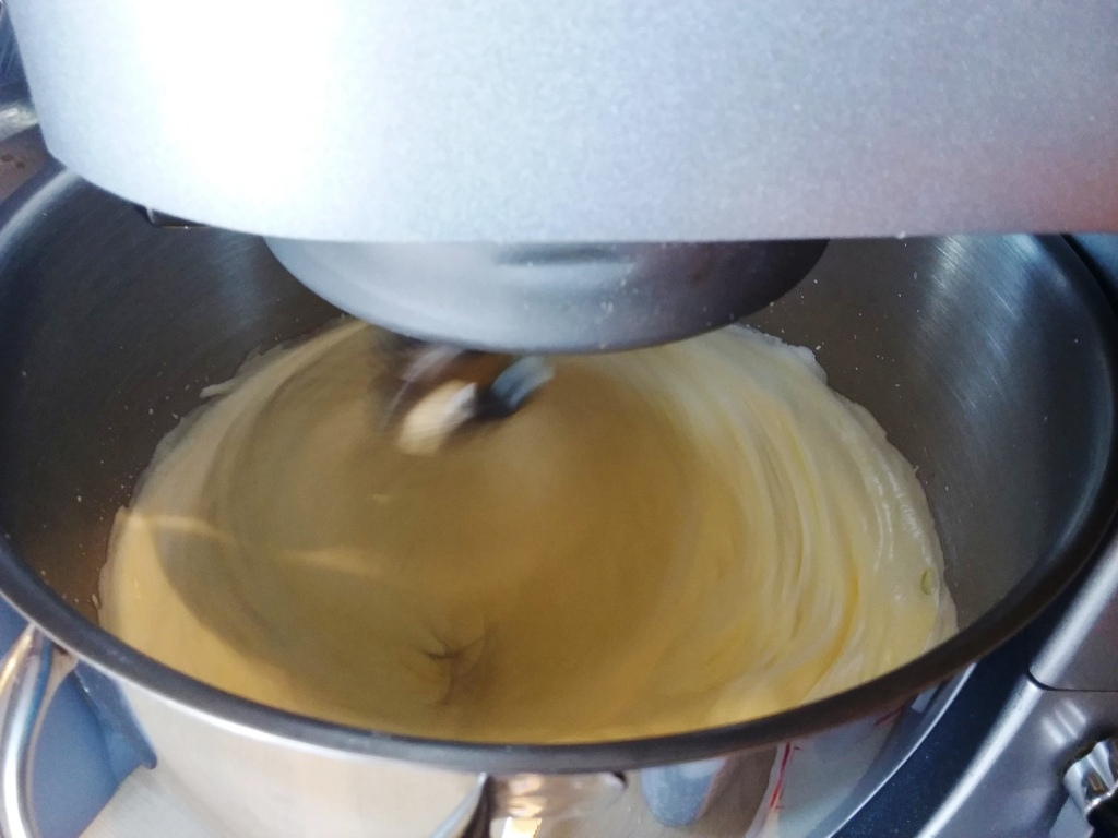 Ed ecco il passaggio che menzionavo nell’introduzione: quando le uova saranno ben montate, gonfie e vaporose, lasciarle girare ancora 2′ a velocità ridotta. Ho effettivamente constatato che ciò aumenta la spumosità e la stabilità della montata.