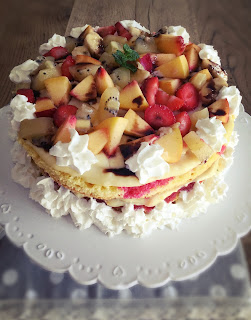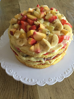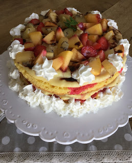 Farcire con uno strato di crema pasticcera e con la frutta mista: