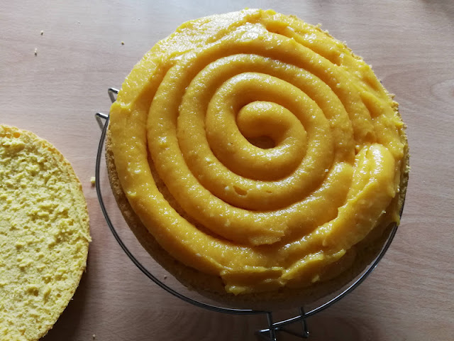 Porre il lemon cud in una sac a poche munita di bocchetta da 1 cm di diametro e fare dei cerchi concentrici con appare in foto.
