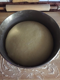 Trasferire il composto sulla spianatoia leggermente infarinata, lavorare ancora qualche secondo a mano, formare una palla e metterla in una ciotola a lievitare coperta da pellicola trasparente fino al raddoppio.
