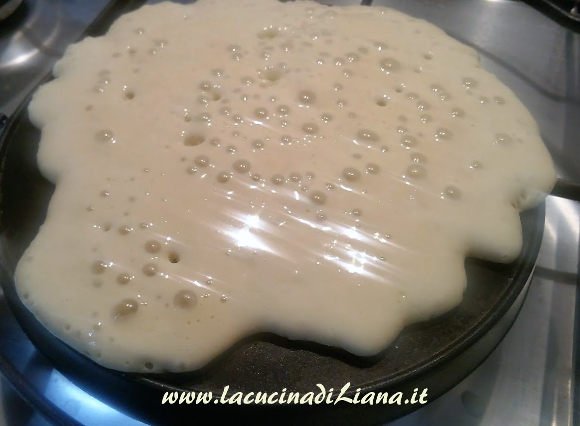 Scaldare una teglia antiaderente, quindi versare un mestolino per volta del composto cuocendo i pancake 2 minuti per lato.