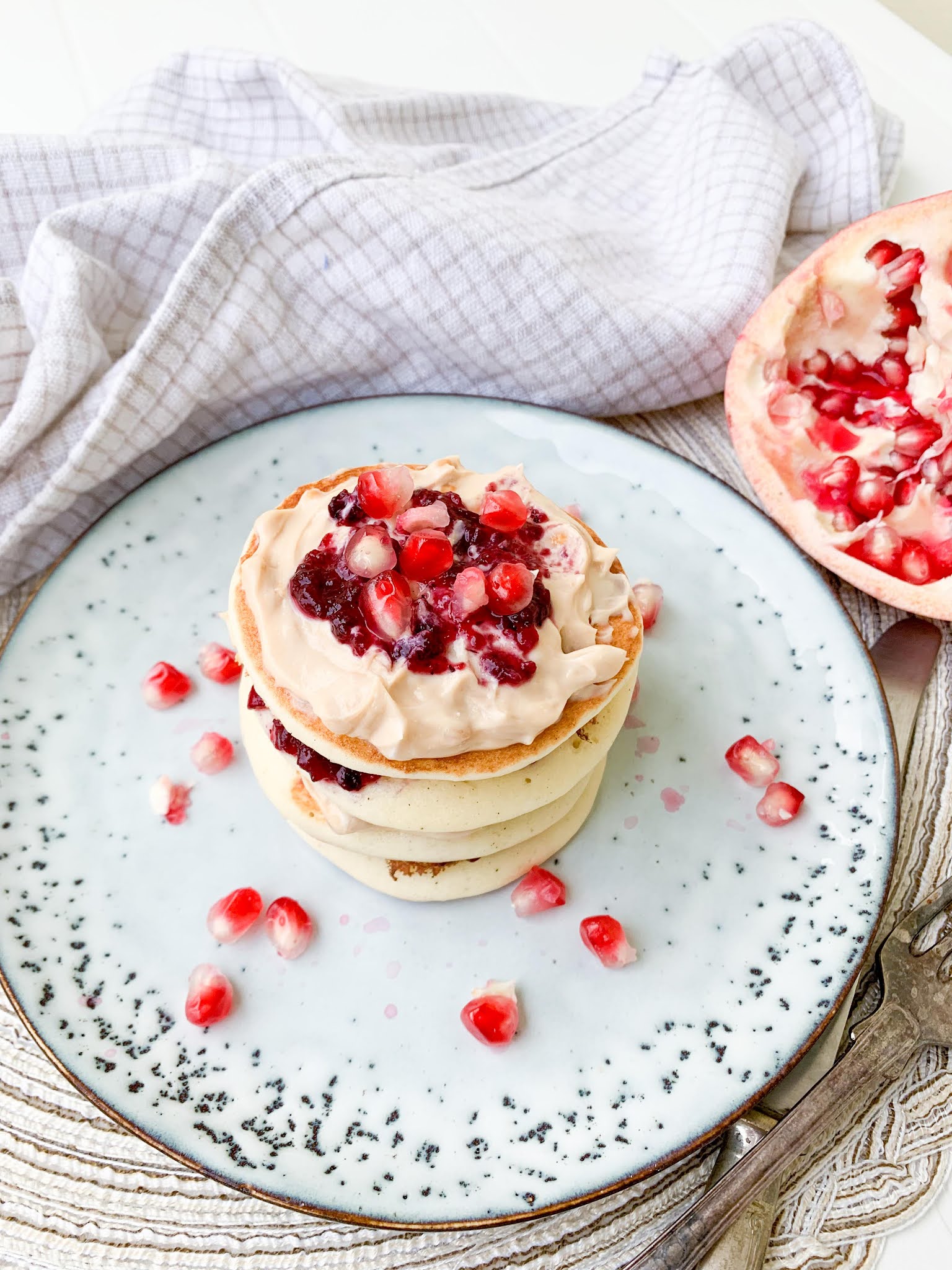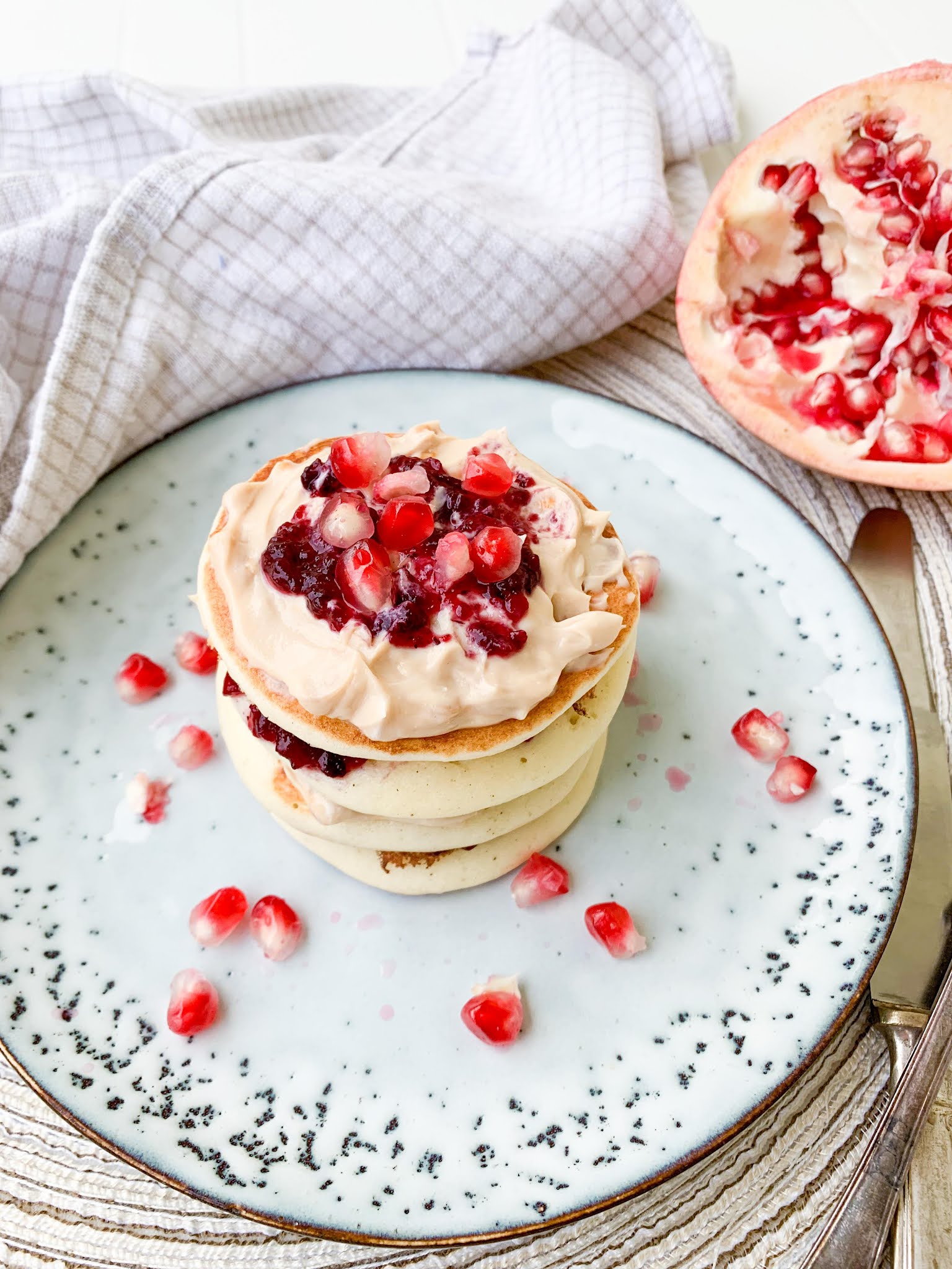 PANCAKE AL GRANO SARACENO, CREMA DI RICOTTA E MIELE E FRUTTI DI BOSCO
