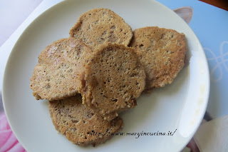 70 gr farina integrale di farro appena macinata, 1 cucchiaio raso di zucchero integrale di canna, 50 gr nocciole tritate, 100 gr acqua.