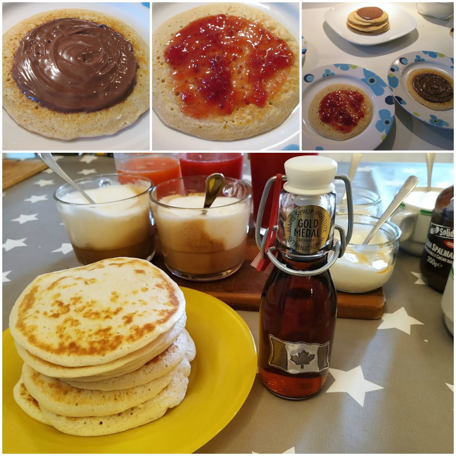 Molto simili alle Crepes si differenziano per essere più alte e soffici,dalla consistenza un pò spugnosa, vengono servite impilate l’una sull’altra e accompagnate da frutta fresca, burro di arachidi, marmellata o irrorate con il classico succo d’acero (oramai reperibile anche nei nostri supermercati!). Noi le adoriamo spalmate, come da variante europea, con crema di nocciole e anche spolverate semplicemente con un pò di zucchero a velo.