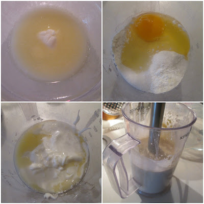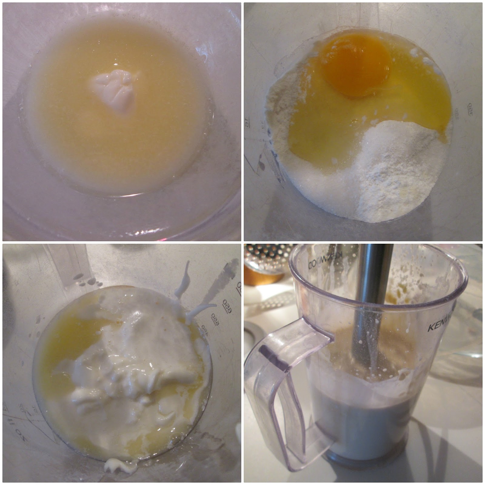 IO verso tutti gli ingredienti in un bicchiere da mixer e poi frullo tutto (il burro precedentemente fuso)
