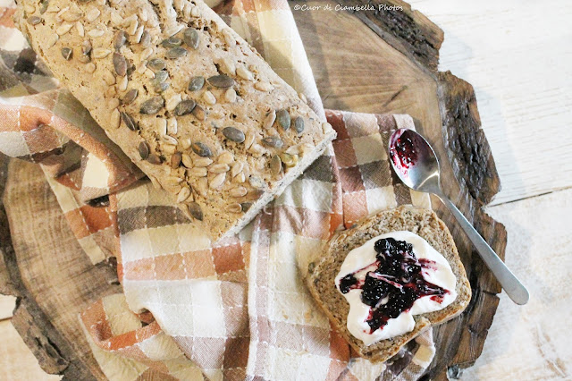 Una delle cose che mi da più soddisfazione è preparare il pane. Si pensa sempre che preparare il pane sia difficilissimo. In realtà non è affatto vero!! O per lo meno, lungi da me paragonarmi ad un panettiere, ma sicuramente ci si può provare ottenendo un risultato leggero. Il pane che vi propongo oggi è di farina 100% integrale, metà farro e metà grano tenero. In realtà questo è il mio cavallo di battaglia. Arricchito con fiocchi d’avena e semi oleosi. Un mix di salute perfetto alla mattina tostato, con ricotta e marmellata di fragole oppure di mirtilli! La mia colazione preferita!!