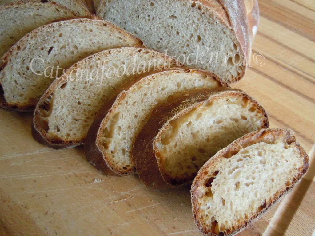 Io l’ho fatto un po’ diverso, in parte per necessità (mi mancava la buratto e non avrei fatto in tempo a procurarmela), in parte perché mi sentivo creativa :-P No, scherzi a parte, ho usato un mix di farine perché ormai si sarà capito che mi diverto a mescolare, ho usato solo mosto (da uva bianca perché la rossa l’avevo usata tutta per fare la scrucchiata) e niente acqua perché sennò mi avanzavano 120 g di mosto con cui non avrei saputo che farci, ho usato un po’ di malto perché voglio essere sicura che i lieviti abbiano pappa a sufficienza per sopportare la lunga lievitazione, ho messo un po’ d’olio evo nell’impasto, che non guasta mai.