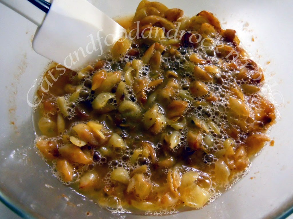 Innanzitutto, bisogna fare il mosto. Quindi bisogna procurarsi un quantitativo di uva DA VINO (quello da tavola NON va bene!!!), ovviamente NON TRATTATA. Se si usa l’uva rossa, il pane verrà di colore viola. Con l’uva bianca, viene piuttosto ambrato. Io ho ricavato 320 g di mosto da circa 550 g di uva, però leggo in giro che non sempre si ottiene la stessa resa, ma si può aggiungere acqua per arrivare al peso richiesto (e del resto, la ricetta originale prevede mosto E acqua).