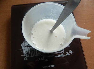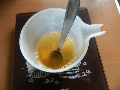 Incominciamo a preparare il lievitino, sciogliere 4 g di lievito in 100 ml di birra a temperatura ambiente e un cucchiaino di miele