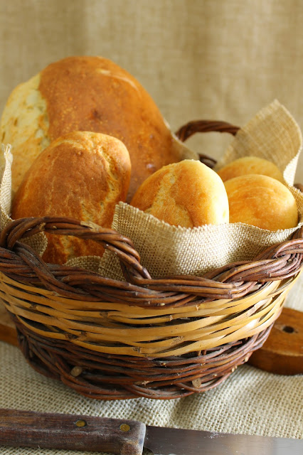 A questo punto ho ribaltato sul ripiano, ho diviso l’impasto a metà; con una metà ho dato la forma di un filone, con l’altra ho diviso in quattro pezzi uguali e ho formato dei panini.