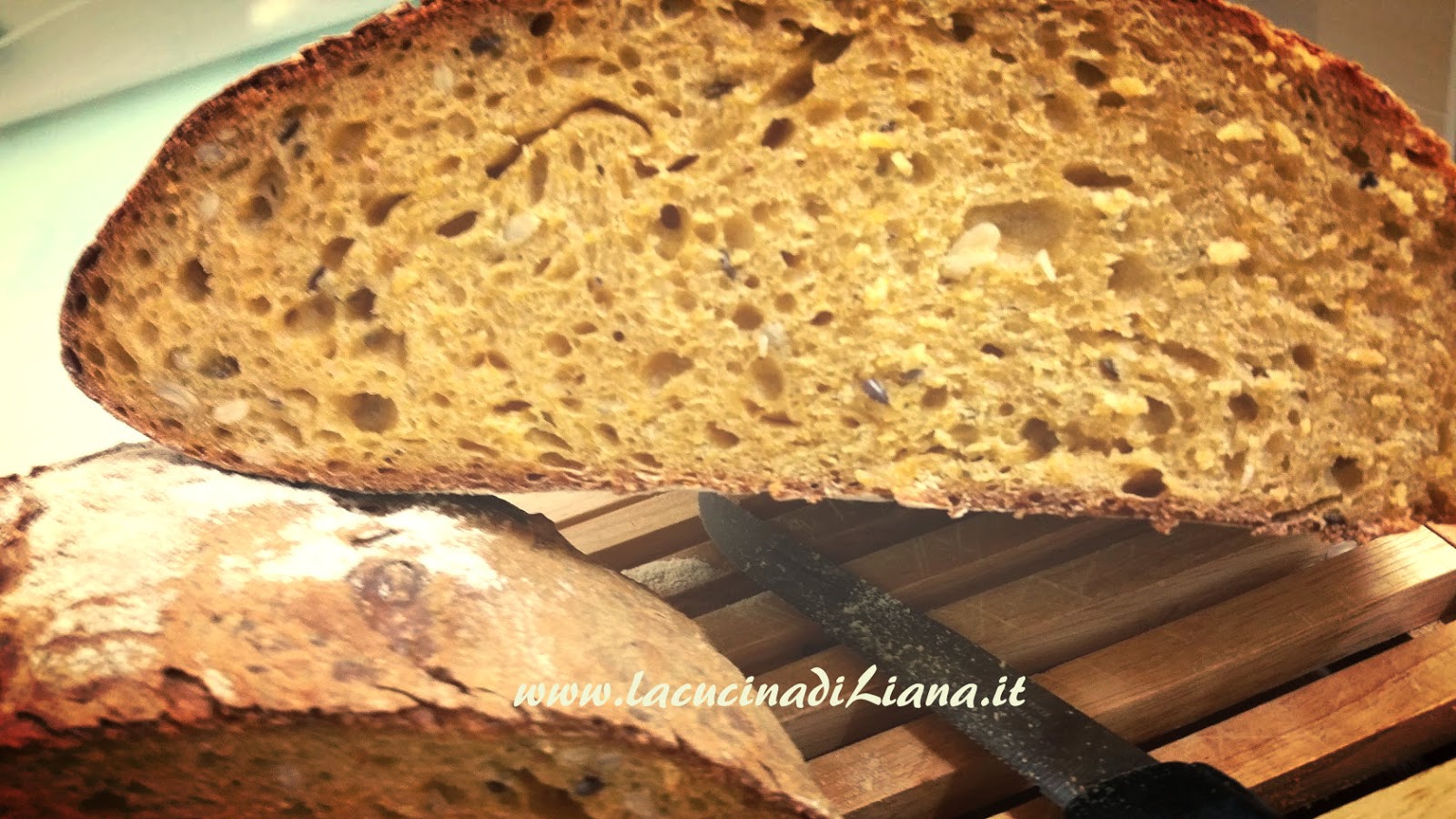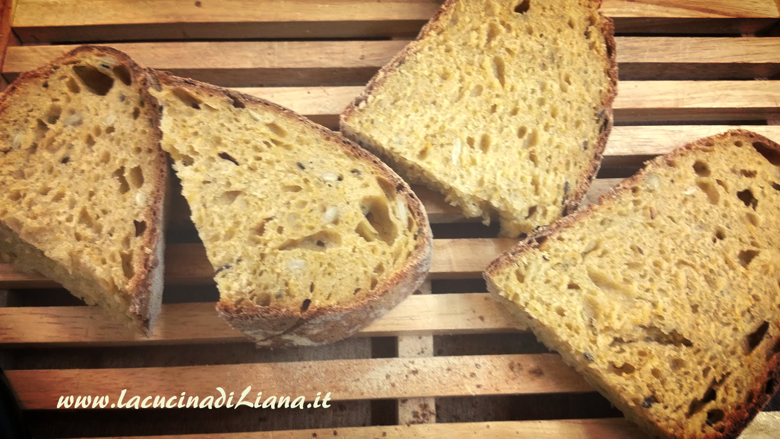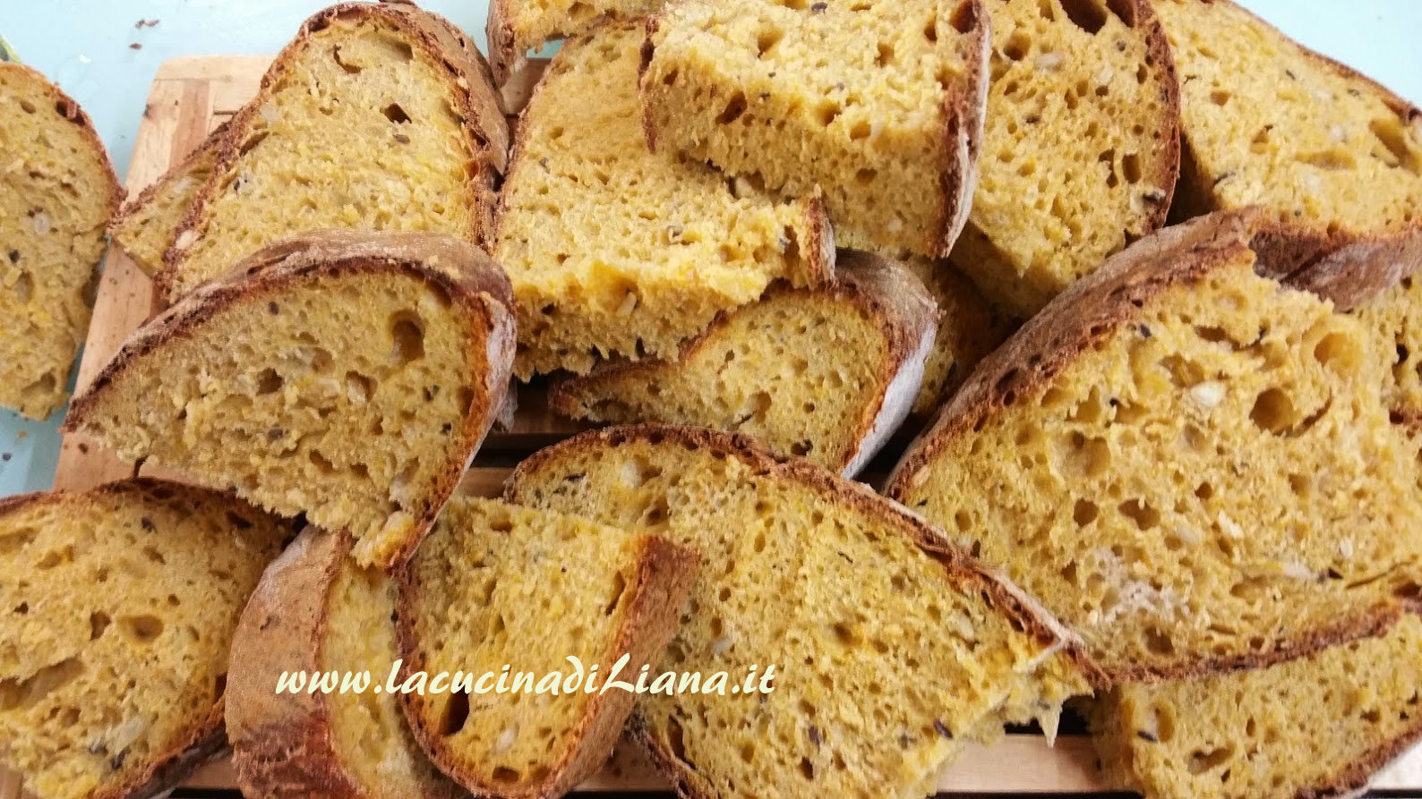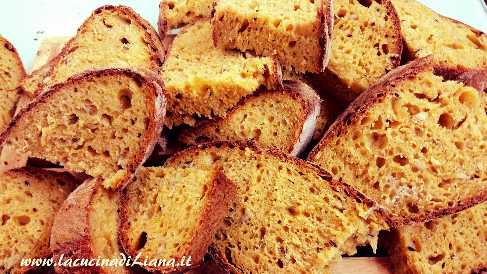 Ecco che vi presento una terza ricetta di pane alla zucca, questa volta con il lievito madre, e anche un’aggiunta di semola di grano duro e di farina di soia, per una bozza di pane davvero ottima, con una sottile crosticina croccante e una mollica bella umida e dalla perfetta alveolatura (almeno per i miei gusti).
