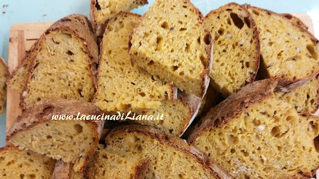 Sciogliere il licoli nell’acqua insieme al miele, aggiungere la zucca cotta e schiacciata con la forchetta o frullata, poi aggiungere impastando le 3 farine, infine il sale, la noce moscata e la maggiorana. Formare con l’impasto una palla riporlo in una ciotola unta di olio, coprire e lasciare lievitare per 1 ora. Riprendere l’impasto e dare un giro di pieghe a portafoglio, quindi lasciare riposare per 30 minuti. Dare la forma desiderata alla bozza quindi metterla a lievitare fino al raddoppio al caldo oppure in frigo se avete necessità di allungare i tempi fino al giorno dopo.