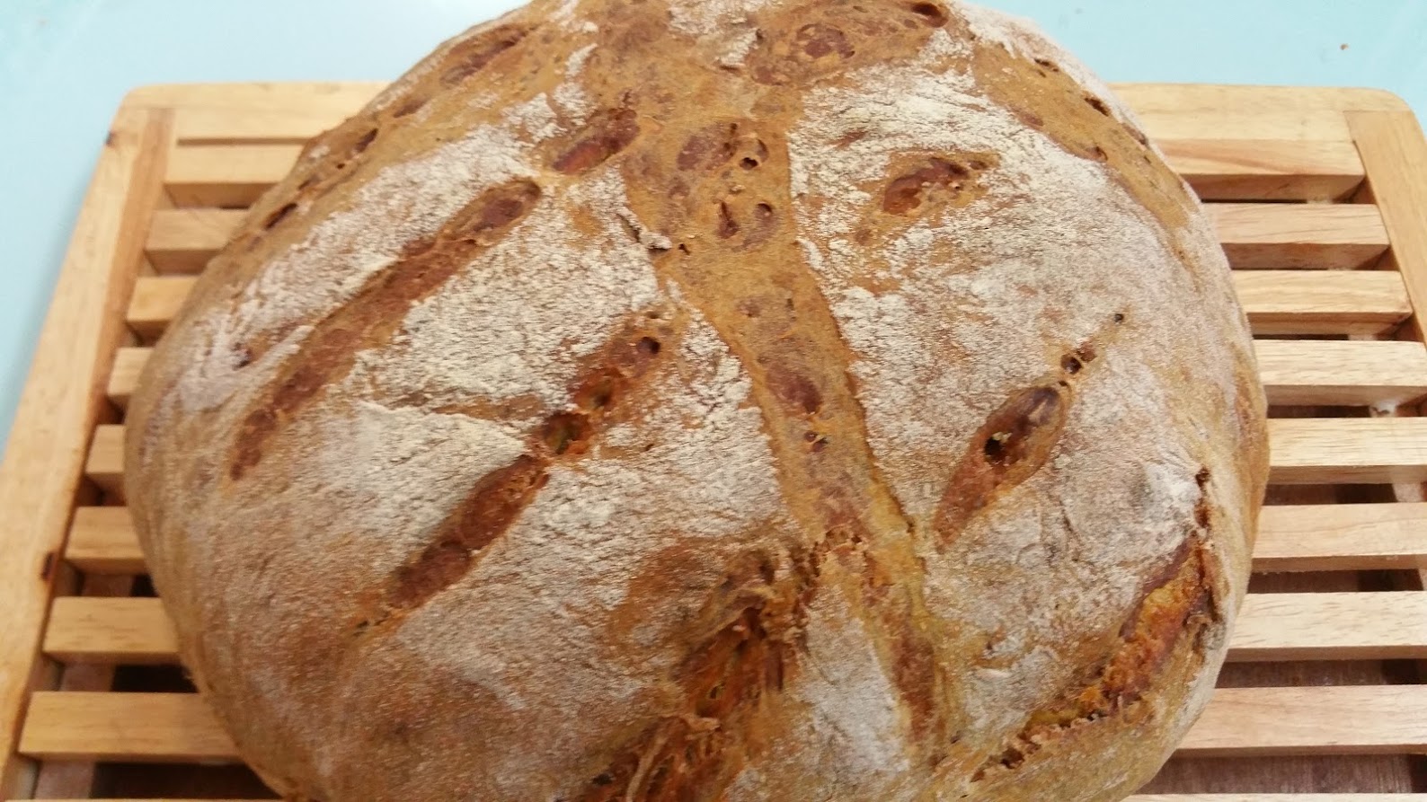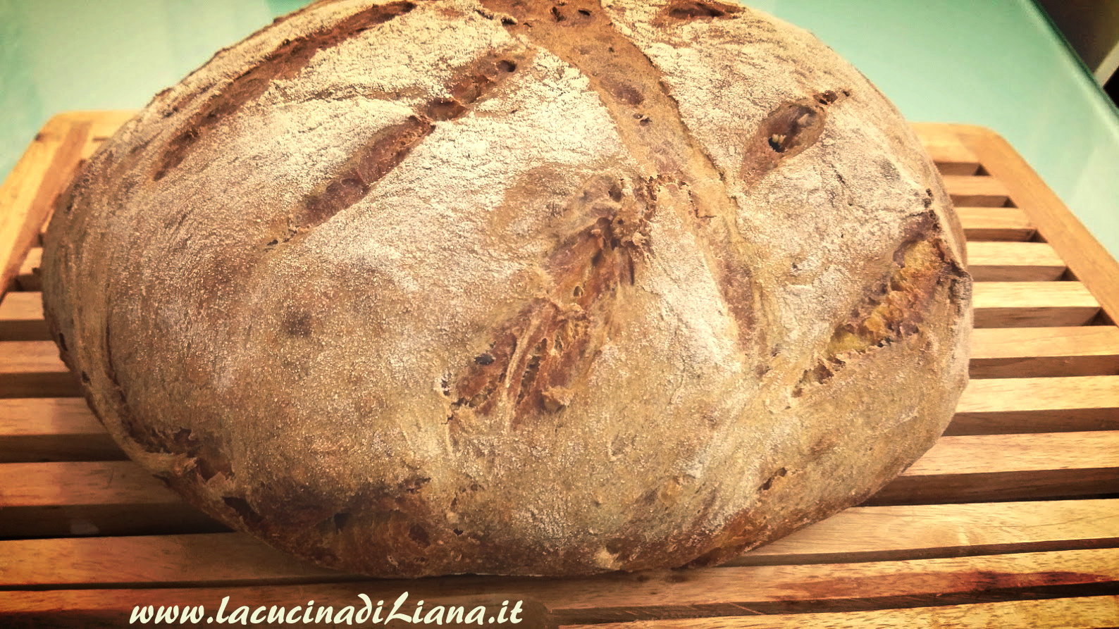 Riprendere l’impasto, praticare dei tagli in superficie quindi infornarlo nel forno preriscaldato a 240 ° per 10 minuti e poi a 200° per altri 35 minuti. Lasciare asciugare il pane nel forno sulla griglia con lo sportello semichiuso.