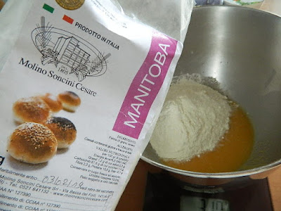 mescolare e aggiungere la Farina tipo-0 Manitoba setacciata e il sale,
