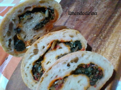Oggi un pane che racconta la nostra cultura, i nostri sapori, la nostra rusticità. Vi troviamo infatti al suo interno la cicoria selvatica che ancora si riesce a trovare nei nostri campi e la nduja, il piccantissimo impasto di carne di maiale e peperoncino. Insieme danno vita ad una farcia appetitosissima, che lascerà a bocca aperta per la sua bontà. Certamente a bocca aperta si potrà rimanere se si eccede con la nduja, perciò vi consiglio di essere cauti nella quantità.
